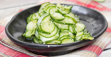 Você vai ver que esses detalhes fazem toda a diferença e dão um sabor maravilhoso. Essa é Sunomono, a salada de pepino japonesa com gergelim tostado. Você já conhecia? Conta aí pra gente nos comentários.